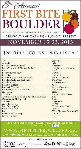 Join Flatz Restaurant for the 8th Annual Boulder First Bite! We will be featuring a $26 Three-Course Prix Fixe Menu. Make your reservations today and see what Flatz is all about!