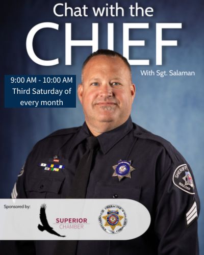 Sgt. Salaman from the Boulder County Sheriff's Office will host Chat with the Chief on January 17th at 9:00 a.m. in the Superior Community Center (1500 Coalton Road).