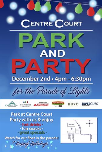 Centre Court merchants, including Chamber members Elements Massage and Salon Nove, are all hosting Open Houses featuring drinks, food and specials.  Stop by to check us out.  Feel free to park and walk to the Parade of Lights in downtown Louisville.