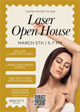 Join us at Halcyon for an interactive Laser Open House where you can see, try, and learn about our most popular laser treatments — all while unlocking our biggest package savings of the season.