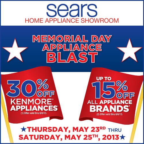 Don't miss out on the annual Memorial Day Appliance Blast sale event. Enjoy extra discounts on the top 10 appliance brands. Visit Sears Home Appliance Showroom in Superior or Aurora and take advantage of great savings on your appliance purchase.