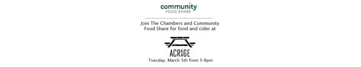 Join The Chambers and Community Food Share for happy hour at Acreage at Stem Ciders,